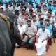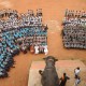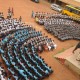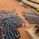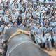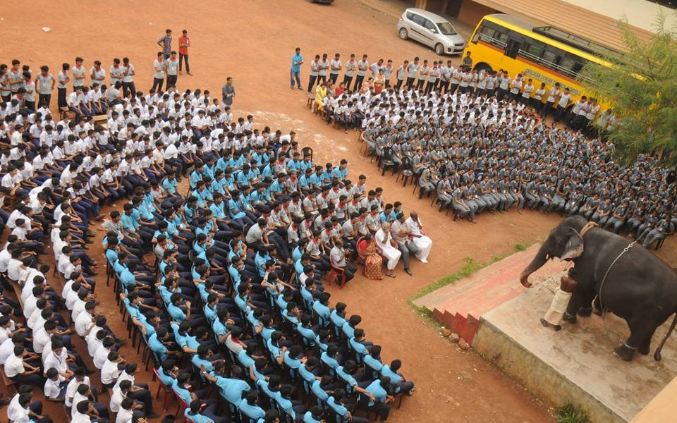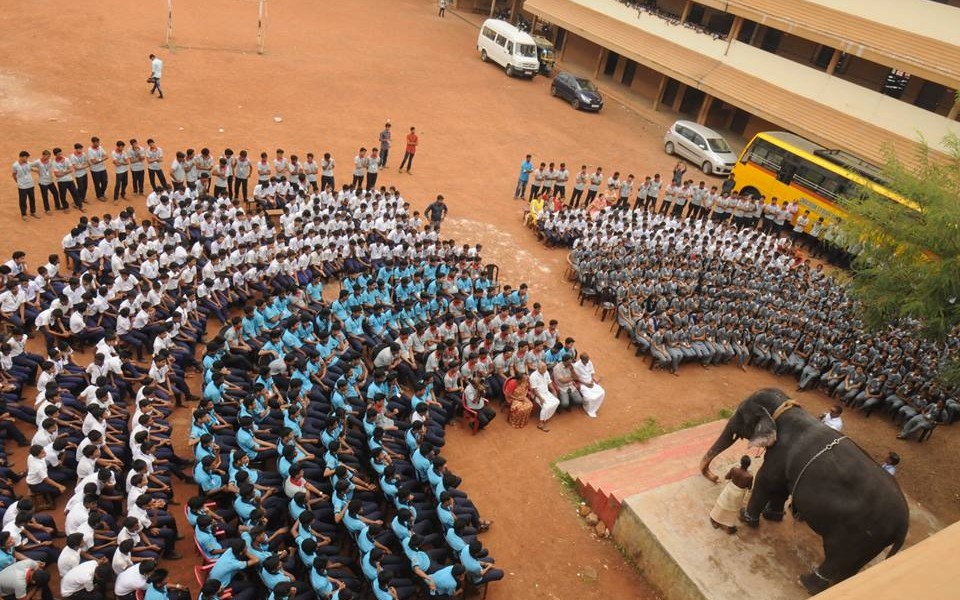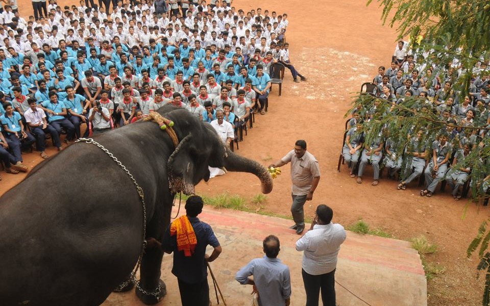 Asian elephants are smaller than African elephants and have the highest body point on the head. The tip of their trunk has one finger-like process. Their back is convex or level.[2] Indian elephants reach a shoulder height of between 2 and 3.5 m (6.6 and 11.5 ft), weigh between 2,000 and 5,000 kg (4,400 and 11,000 lb), and have 19 pairs of ribs. Their skin color is lighter than of maximus with smaller patches of depigmentation, but darker than of sumatranus. Females are usually smaller than males, and have short or no tusks.
