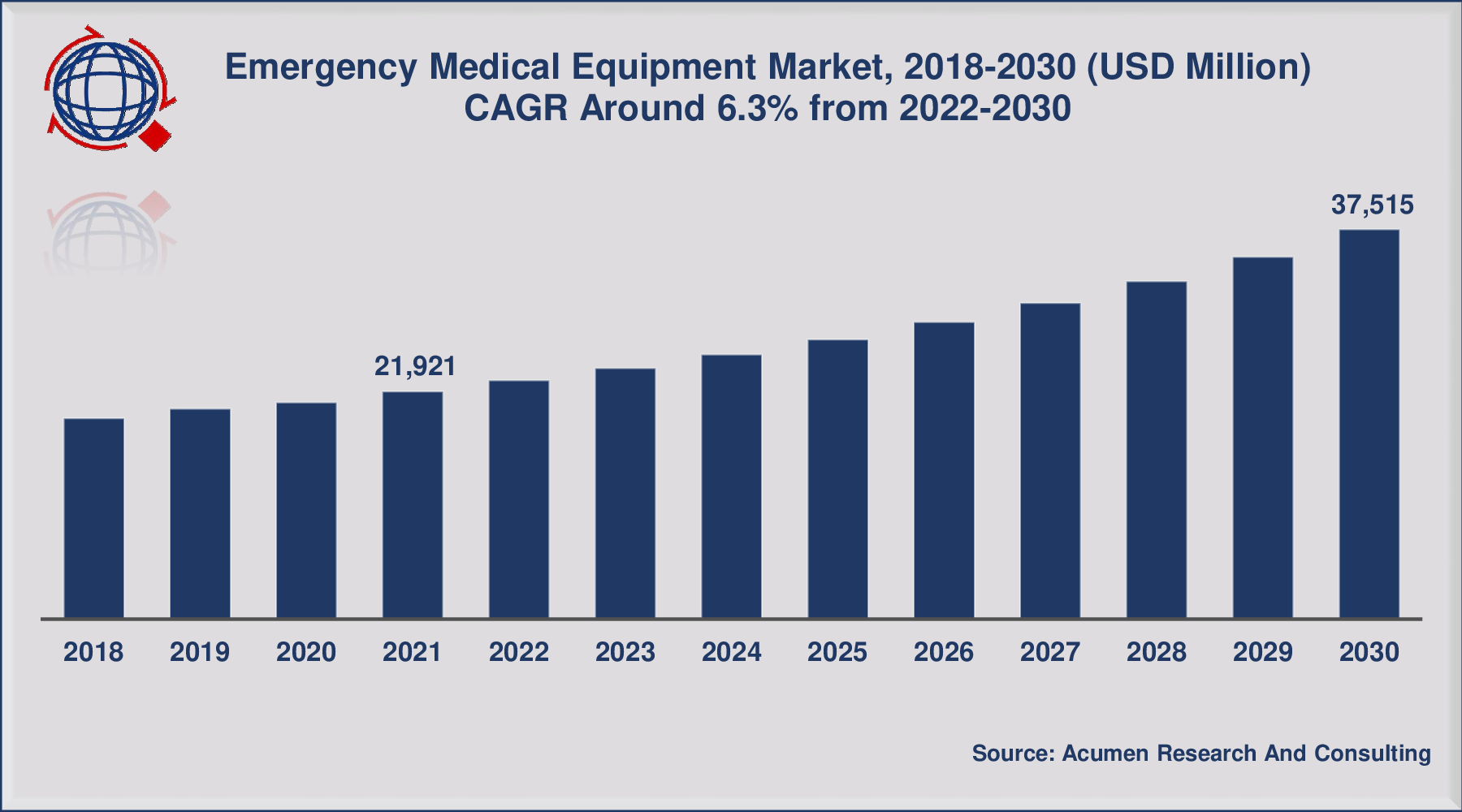 Acumen Research and Consulting recently published report titled �Emergency Medical Equipment Market Share, Analysis Report and Region Forecast, 2022 – 2030�