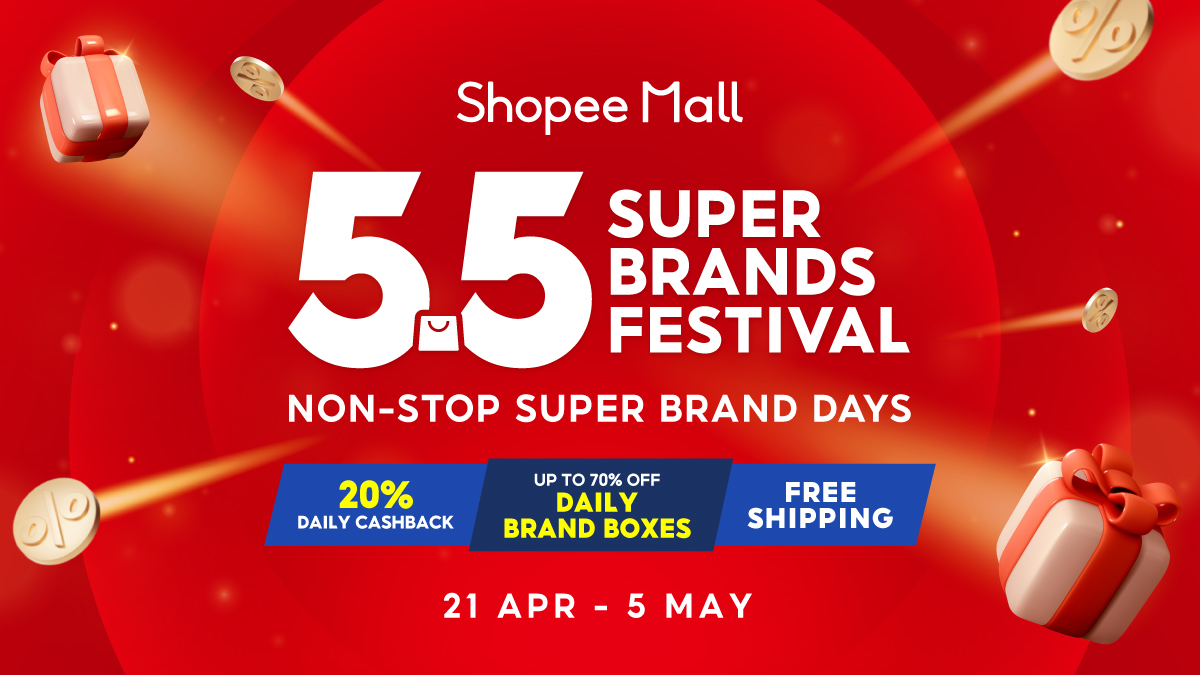 Shopee Mall 5.5 Super Brands Festival runs from 21 April to 5 May, offering shoppers 14 days of non-stop Super Brand Days. They can enjoy 70% off brand boxes, 20% cashback on Shopee Mall and free shipping everyday from authentic crowd favorites. To accumulate further savings, they can also sign up for free brand memberships and tune in to live streams to claim upsized brand vouchers.
