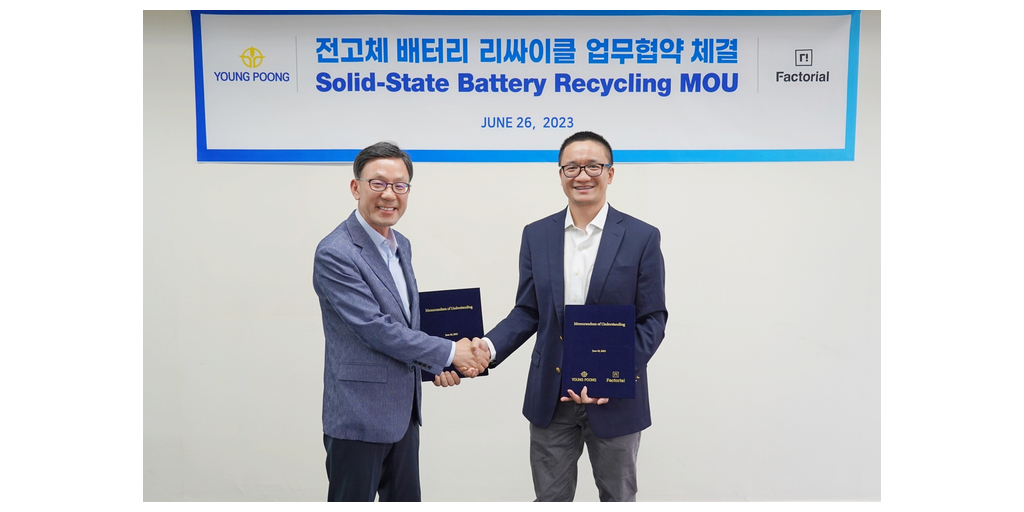 WOBURN, Mass.–(BUSINESS WIRE)–Factorial Energy Inc. (Factorial), an industry leader in the development of quasi-solid-state battery technology for electric vehicle (EV) and storage applications, today announced a new partnership with Young Poong, a non-ferrous metal smelting and refining company in South Korea, to invest in research into lithium-metal recycling for solid-state batteries.