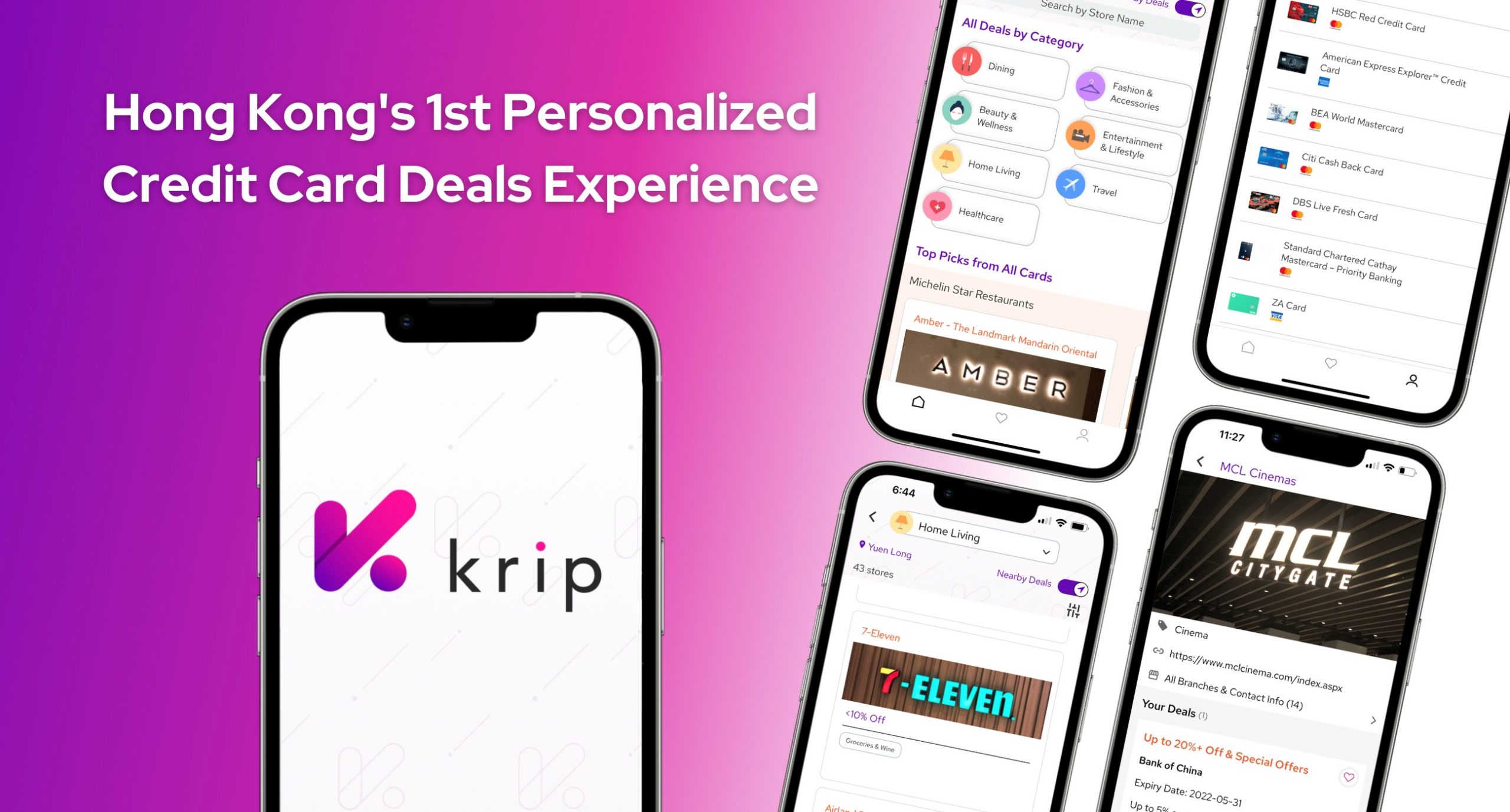 krip is Hong Kong’s first personalized, comprehensive and centralized credit card deals and offers platform, empowering consumers to spend smarter with innovative technology and information transparency. With over 6,000 credit card deals and offers, 3,000 merchants and 480 Hong Kong credit and debit cards listed, krip is the go-to place for consumers looking to get the most out of their cards. Consumers can seamlessly access deals and offers across seven major categories, including dining, fashion & accessories, beauty & wellness, entertainment & lifestyle, home living, travel and healthcare. For more information about krip, visit