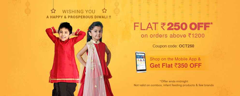 Firstcry wishing you A Happy & Prosperous Diwali along with a special discount offer with Flat Rs.250 Off on orders above Rs.1,200 on Firstcry Website.