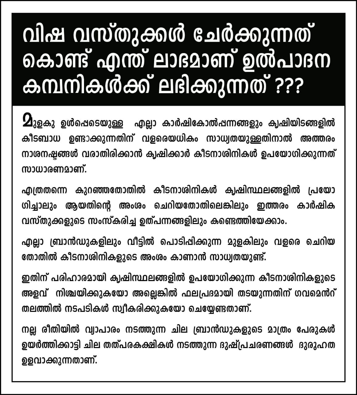Pesticides cannot be banned. Only their usage amounts can be regulated, which government can do. But i have no confidence in that. But if the food brands insist on quality – it will definitely work. This is a consumer demand, and the food brands better meet it