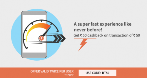 Valid on Min Recharge of Rs.50. Max cashback of Rs.50.