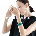 The vivid turquoise blue detailing used in some of FUMIKODA’s products, such as bags accessories, is an item called Orii-blue that was created by traditional artisan Koji Orii from Takaoka-Doki, a copper that boasts a history of over 400 years.