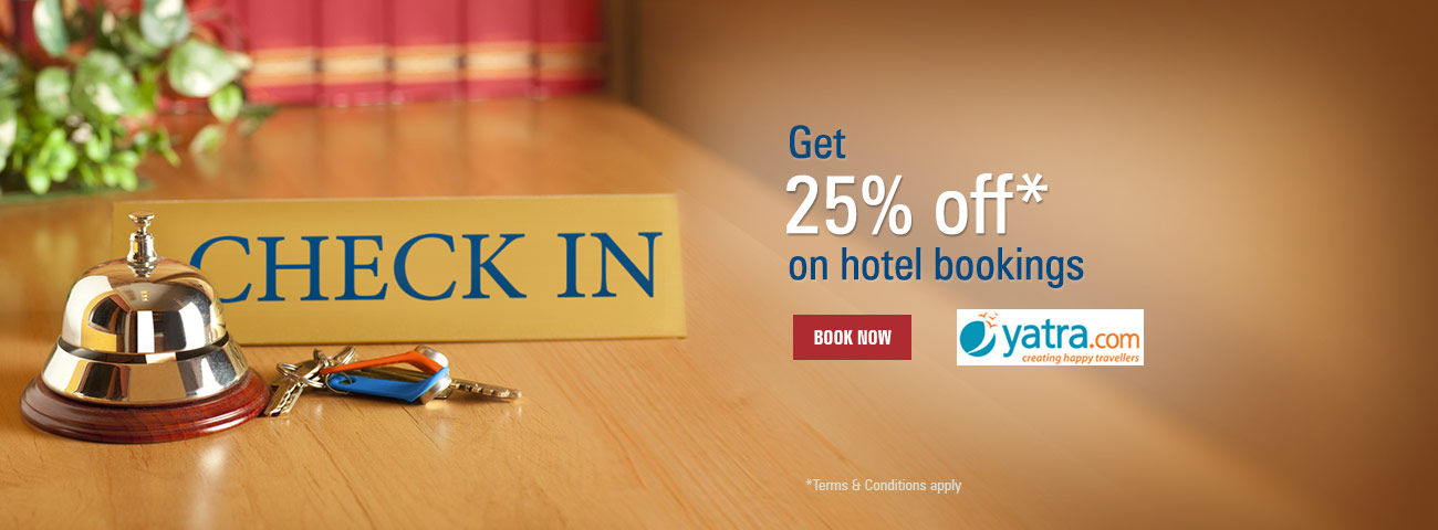 Offer is not valid on select Hotels. To check the list, please log on to http://www.yatra.com/fresco/offer/details/hotel-list