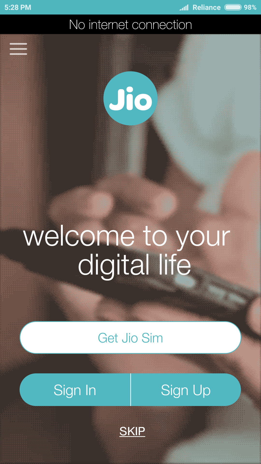 Step 5: Open My Jio app, and click on Open next to My Jio. Itd be show No internet connection error on top, but dont care about it. It opens the Login screen, and there youd see the Get Jio Sim button.