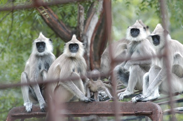 Gray langurs are large and fairly terrestrial, inhabiting forest, open lightly wooded habitats, and urban areas on the Indian subcontinent.