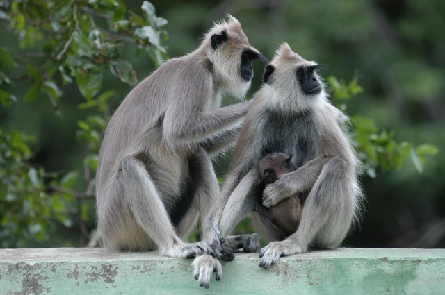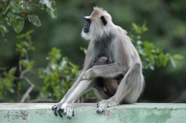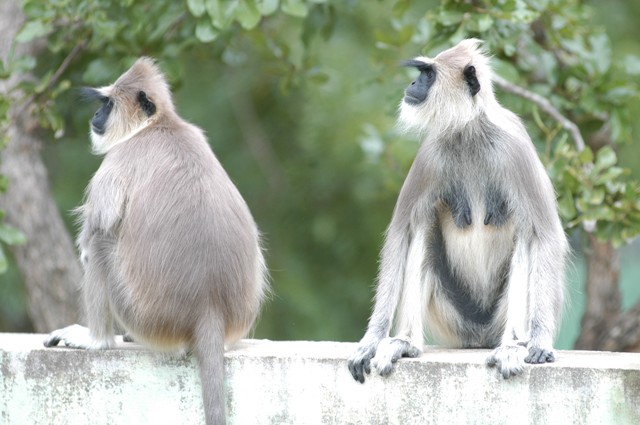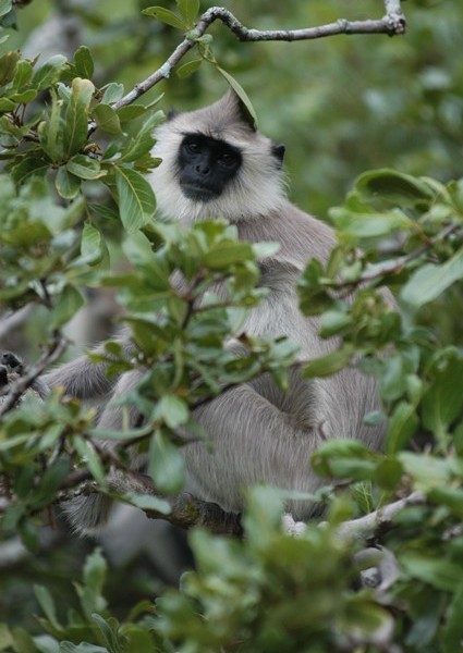 With long strong limbs, the Hanuman Langur runs fast on the ground on all fours, and climbs well and is agile among trees, its long thin tail providing balance. Their horizontal leaps average 3-5m but can reach up to 13m with some loss of height. But it is more nervous on the ground, and will flee to the trees when in danger. They usually only move on the ground when trees are scarce. They forage during the morning and late afternoon. The troop returns to the same sleeping tree every night. They sleep at the ends of branches, where it’s hard for a large predator to get at them. Sometimes, they sleep in caves.