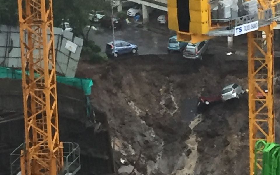 Dosti was making a building and their piling gave up. They had dug almost 30-35 feet of ground and due to heavy rains ground created lot of pressure on piling pillars.