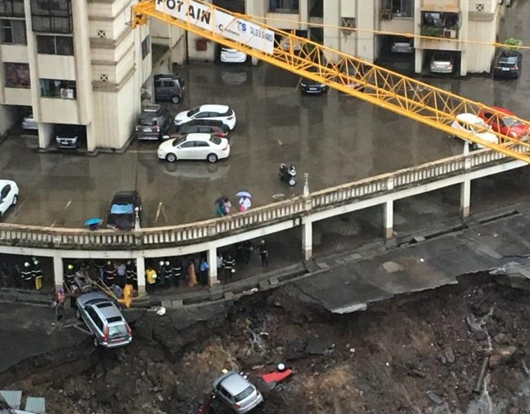 High rise building, premises road caves in at Lloyds estate, Mumbai