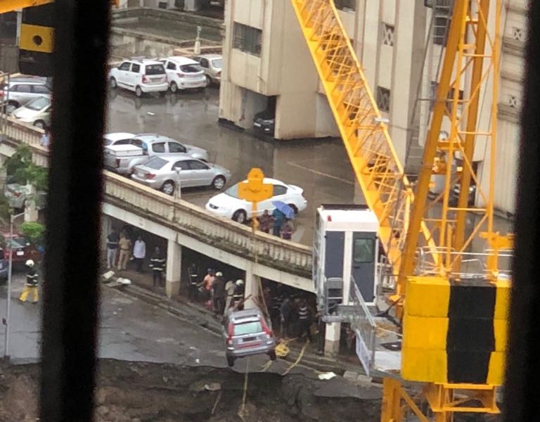 High rise building, premises road caves in at lloyds estate c wind and d wing Antop Hill near Vidya lankar college Wadala East.. over 15 20 cars inside. Residents trapped inside the building not able to come out… officials and fire brigade reached spot to vacate and help people out…