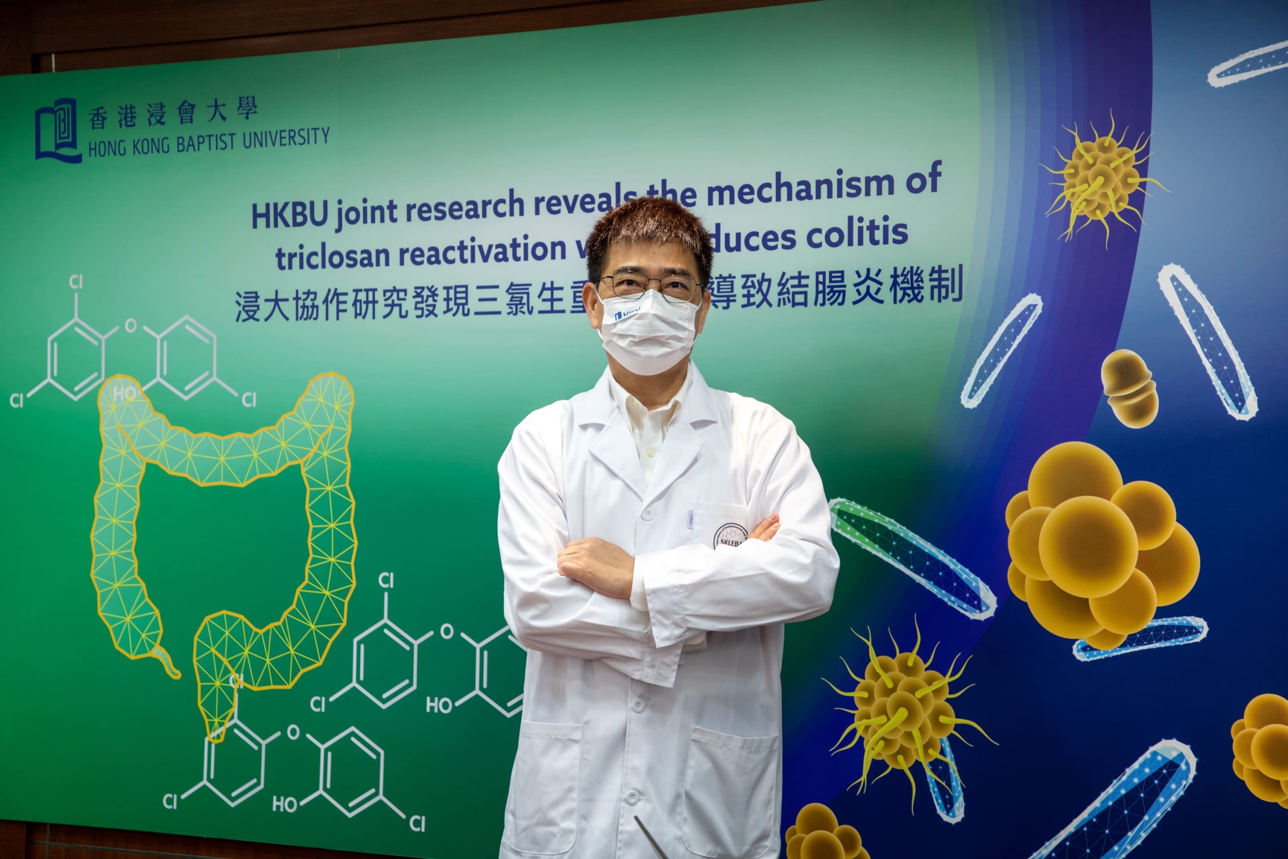 To answer this question, a research team co-led by Professor Cai Zongwei, Chair Professor of the Department of Chemistry and Director of the State Key Laboratory of Environmental and Biological Analysis at HKBU; Professor Matthew R Redinbo from the University of North Carolina at Chapel Hill; and Professor Zhang Guodong from the University of Massachusetts Amherst conducted a research study based on the hypothesis that certain gut microbial enzymes act on TCS-G in the gut, leading to the reactivation of TCS and the subsequent development of colitis.