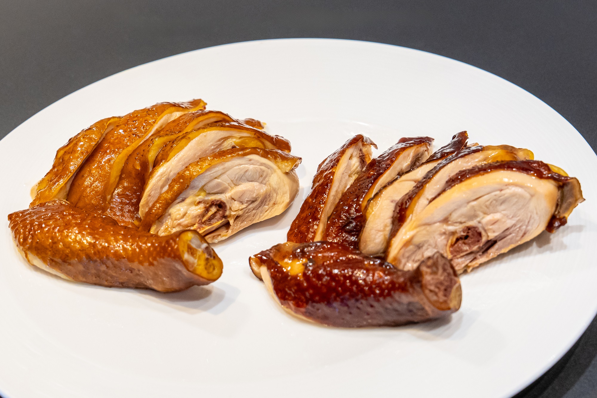 Star Chef Kenneth Loo pushed EXOTICA UMAMI to its absolute limits, taking on the extraordinary challenge of using EX M sauce in a carefully developed recipe to vacuum marinade and poach frozen chicken in direct comparison to a blind test using fresh chicken with soy sauce. In Hong Kong, using fresh chicken for soy sauce chicken is a deeply rooted practice driven by culinary tradition, as the meat needs to remain succulent while the skin takes on a shiny, flavourful finish. Fresh chicken—not frozen—is generally used because it retains natural moisture, has a tender texture, and absorbs marinade better due to its intact cell structure, resulting in juicier, more flavourful meat with a glossy, appealing skin. Frozen chicken releases excess water, has damaged cell structure, and may develop a mushy texture, reducing marinade absorption and diluting flavour while creating a drier and tougher texture when cooked.