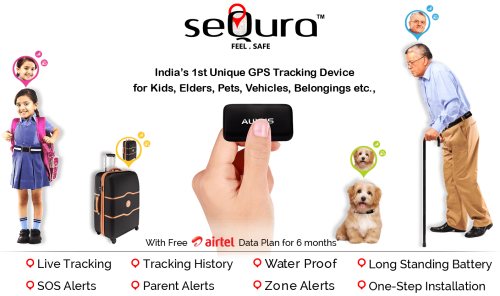 The seQura device box comes with the GPS tracking device, charging cable, screws, mini screw driver and a free Airtel Nano SIM card. The launch offer price and Airtel Free internet is valid only for limited period. You can use any SIM card in the device.