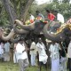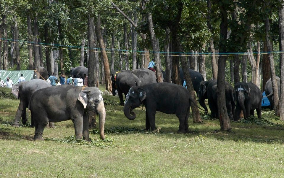 The largest Indian elephant was 3.43 metres (11.3 ft) high at the shoulder. In 1985, two large elephant bulls were spotted for the first time in Bardia National Park, and named Raja Gaj and Kanchha. They roamed the park area together and made occasional visits to the females. Raja Gaj stood 11.3 ft (3.4 m) tall at the shoulder and had a massive body weight. His appearance has been compared to that of a mammoth due to his high bi-domed shaped head. His forehead and domes were more prominent than in other Asian bull elephants.