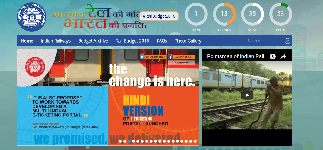 Complete latest information with regard to Rail budget 2016-17 and all current data base is available on this micro-site for ready reference for media and common public.