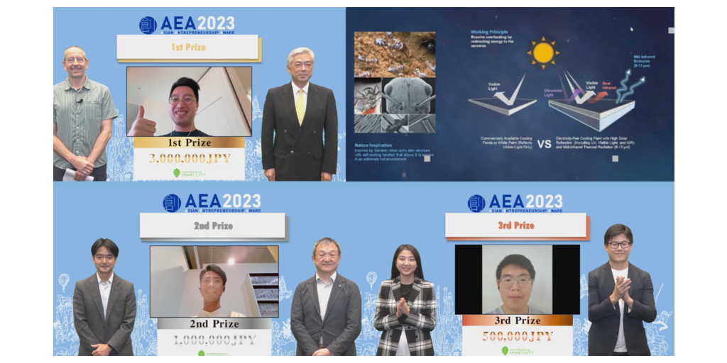 CHIBA, Japan–(BUSINESS WIRE)–An innovation award, the 12th Asia Entrepreneurship Award (AEA) 2023, took place in Kashiwa-no-ha on October 26th, 2023, where entrepreneurs from countries and regions in Asia contended with each other.