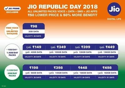 #Jio Republic Day 2018: Jio Announced Republic Day Offer Plans: Offer Starts from 26th Jan 2018