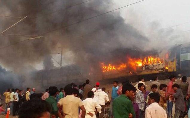 Thousands of people belonging to the Kapu community reached V. Kotthuru village by afternoon to attend the meeting. With Mr. Padmanabham calling upon the participants to launch an agitation, people formed into groups and staged rasta roko and rail roko protests in Tuni town. First, they stopped the Ratnachal Express at the Tuni station by squatting on the tracks. Even as they were raising slogans, police arrived on the scene to disperse the mob. All of a sudden, agitators started pelting the train with stones. Initially, the engine was targeted. Passengers panicked and got down from the train. Immediately, the mob set the coaches ablaze. Five coaches were destroyed by the time fire tenders were pressed into service.