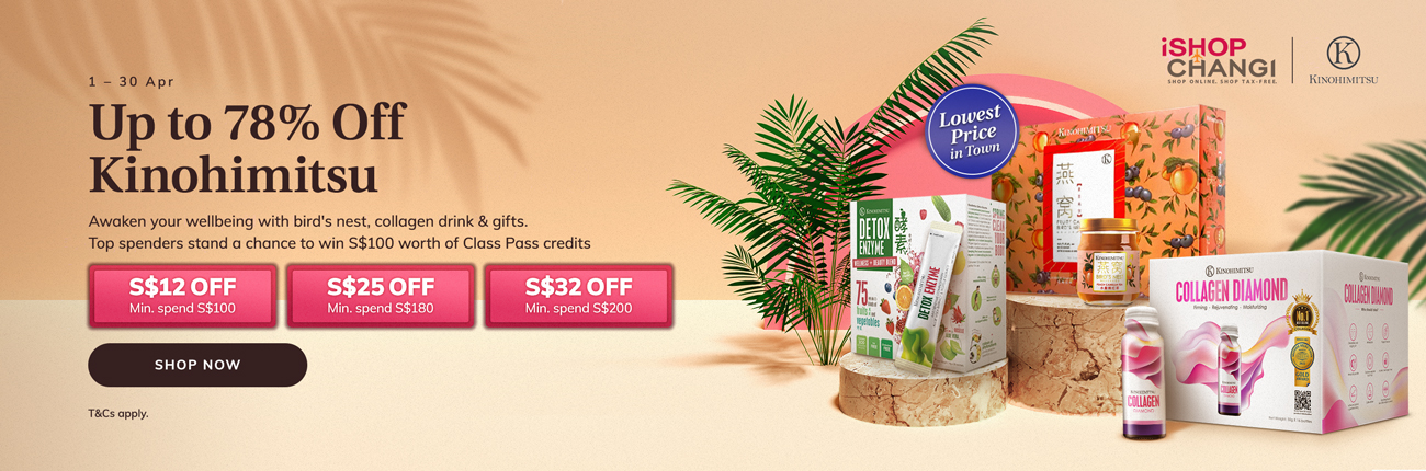 iShopChangi shoppers can also enjoy deals and complimentary gifts with a minimum spend on Kinohimitsu products. Expect up to S$32 off and a Kirona Scent Aroma Diffuser worth S$49 to take home. With incredible gifts and attractive deals up for grabs, Kinohimitsu is the brand to snap up from iShopChangi this April.