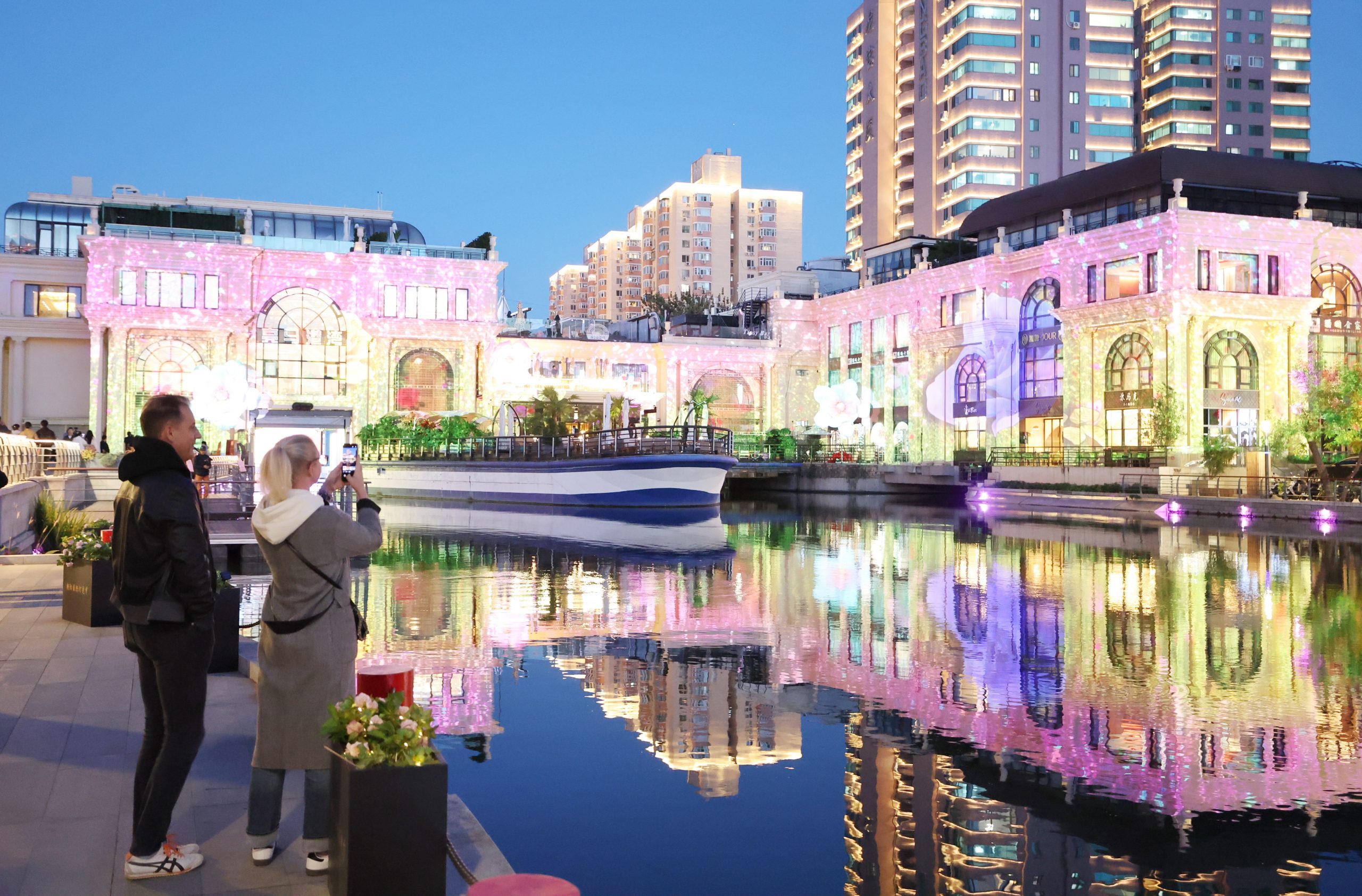 Starting from the Yansha Wharf, an “AI Dancer” gracefully performs on building facades, showcasing a dance projection called “Light Dance of Blossoms,” created using AI technology. At Liangma Port, the Bogong Lock features a rich display of light and shadow effects, combining naked-eye projection, laser drawing, and mechanical movements with a strong national style. At SOLONA Wharf, the “Magical Night: Music Box” light show combines music with visual art, creating a lively atmosphere that feels like a magical stage.