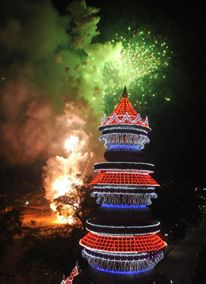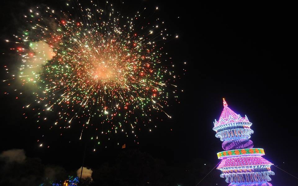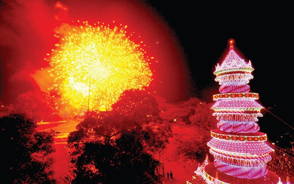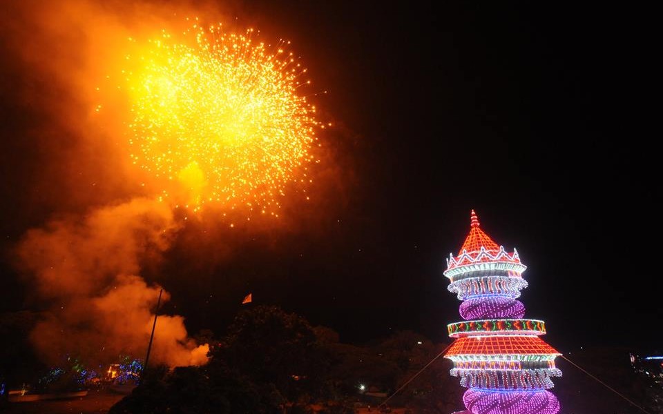 Fireworks are an essential part of almost all events in Kerala .But in Thrissur Pooram, the fire works are distinct in character, performance, excellence and magnitude. Both Thiruvambady and Paramekkavu temples compete with each other to provide the crowd with the best and the most unexpected. People come from faraway places to watch this amazing display of pyrotechnics. There are four major firework displays in Thrissur Pooram. The ‘sample fireworks’ on the day before the Pooram, the colorful sparklers that light up the sky (amittu) by both sides on the Pooram evening after the Southward Descent, the most impressive event that mark the peak of Pooram celebrations in the early morning hours, and the final fireworks the following noon after the Goddesses bid farewell to each other that mark the end of Pooram.