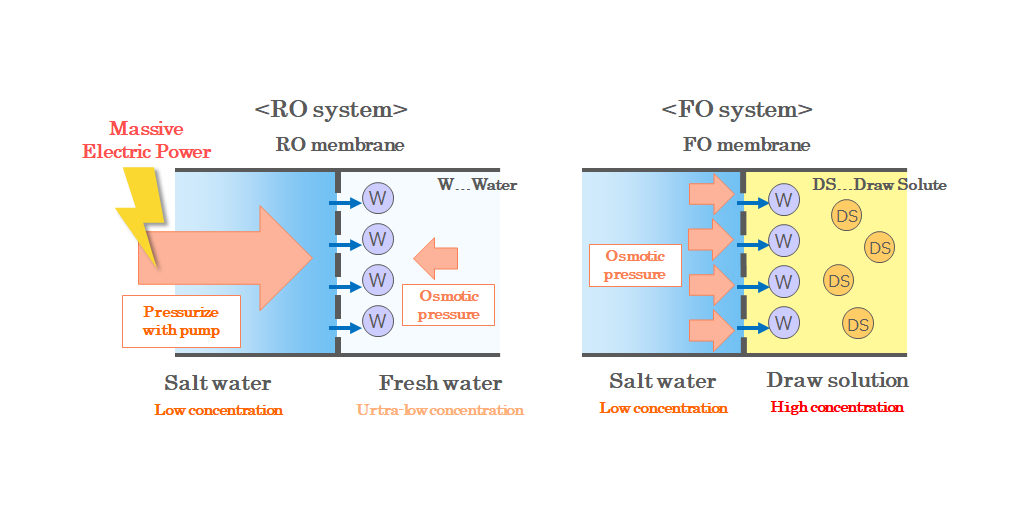The FO system by Trevi Systems was adopted in the Sun Shot program by the Department of Energy, USA. An experiment will be conducted to demonstrate the desalination of seawater using the solar heat collection facility owned by the Natural Energy Laboratory of the Hawaii Authority (NELHA).