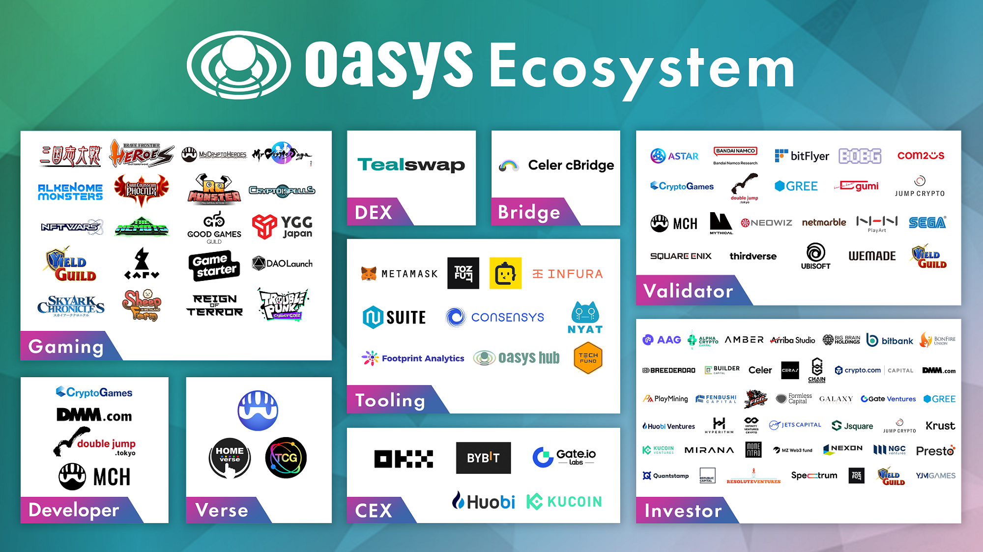 Oasys was established in February 2022 to increase mainstream play-and-earn adoption, and at launch, committed to partnering with 21 gaming and Web3 tech companies to act as validators, such as Bandai Namco Research, SEGA, Ubisoft and Yield Guild Games. Led by a team of blockchain experts and joining forces with the biggest gaming company names to serve as the initial validators, Oasys is revolutionizing the gaming industry with its Proof-of-Stake (PoS) based blockchain.