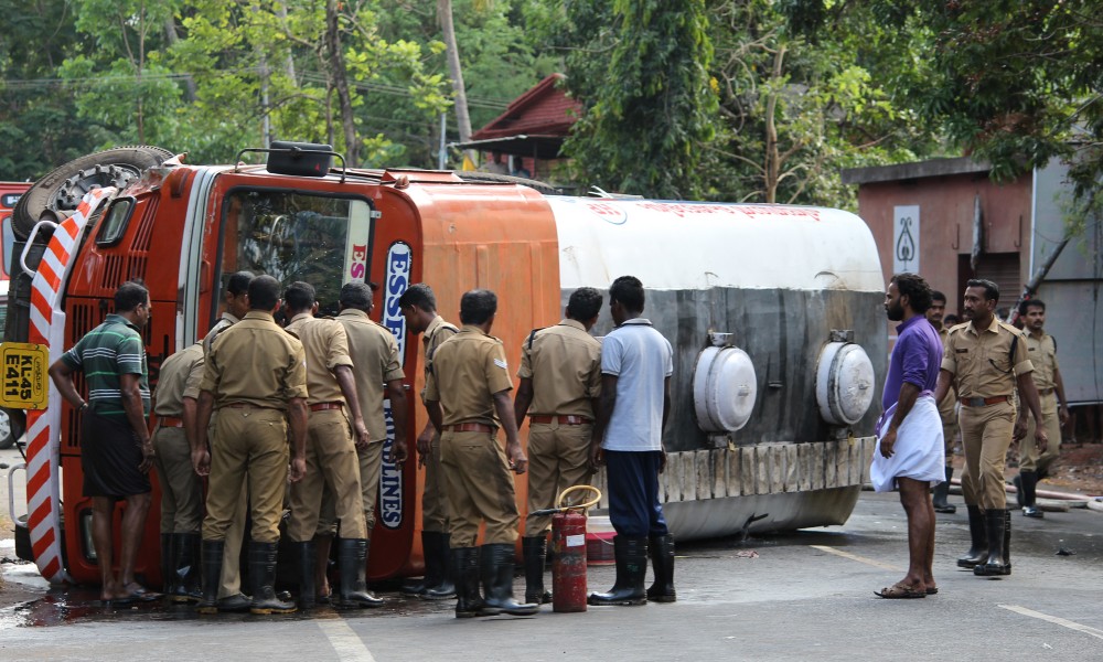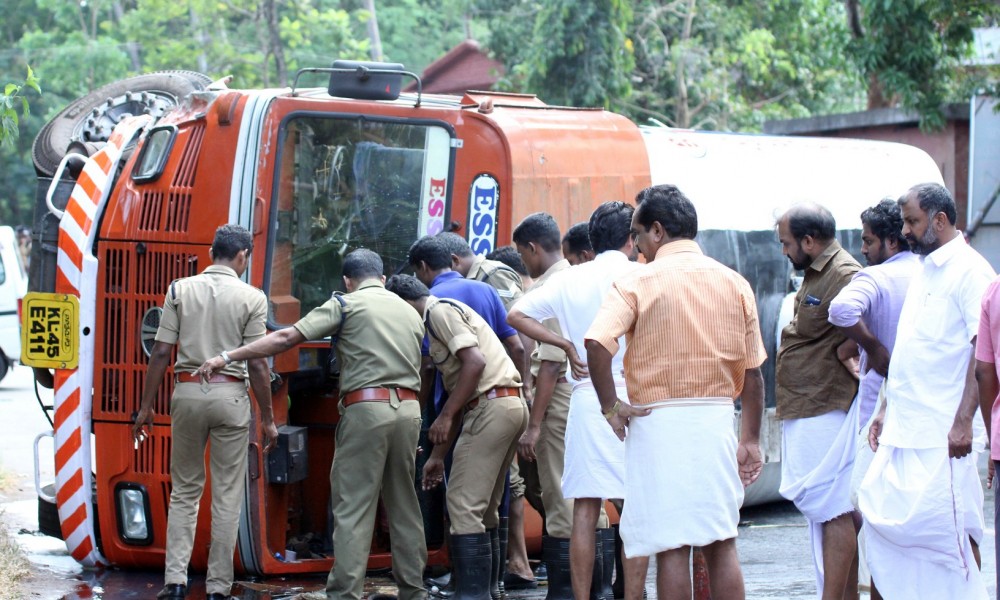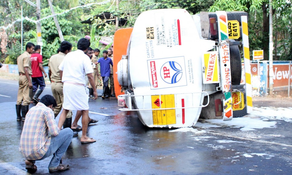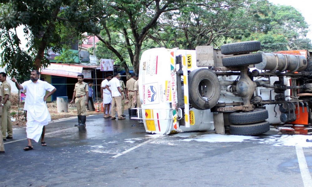 The Accident happened at Kolazhy near Thrissur. � People become panic because of � Leakage of Fuel. Police and Firemen came Immediately and take sudden control on the Panic situation.