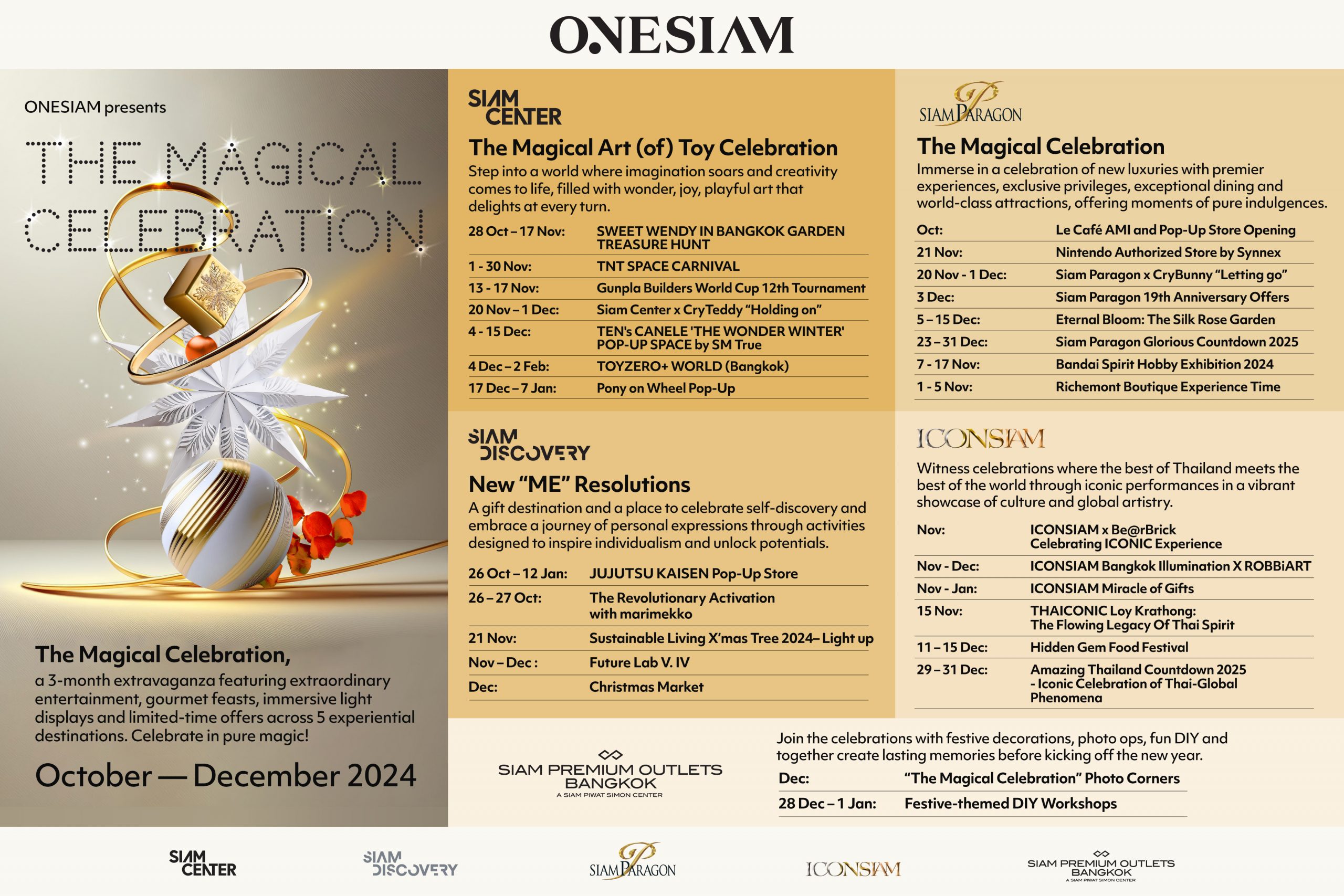 BANGKOK, THAILAND – Media OutReach Newswire – 24 October 2024 – Bangkok is set to become the ultimate destination for world-class year-end celebrations as ONESIAM, which encompasses extraordinary experiences across five of the city’s top experiential destinations, transforms Bangkok into a vibrant hub of grand celebrations. Under the banner of “The Magical Celebration,” this three-month festivity invites visitors from around the world to immerse themselves in a sensory journey filled with magical joy.