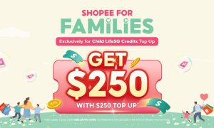 Top up $250 in Child LifeSG credits to ShopeePay by 31 July and unlock $250 in Shopee vouchers, ShopeePay in-store vouchers, and...