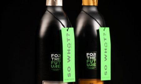 The Iconic ‘Nerodilambrusco’ and the Brand-New ‘Bolledichardonnay’ In An Aluminium Bottle Sealed With A Cork and Cage For Sparkling Wine TORRILE, ITALY...