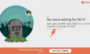 No more asking for Wi-fi. Get upto 150MB data Free on a minimum prepaid recharge of Rs.100/- Freecharge is offering this deal....