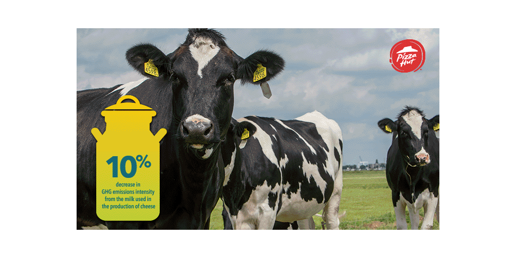 PLANO, Texas–(BUSINESS WIRE)–Pizza Hut has a long history of adding craveable goodness to its food, and that includes one of its most important ingredients – its cheese. To invest in making its cheese more sustainable, the brand partnered with Dairy Farmers of America (DFA), a farmer-owned cooperative owned by more than 10,000 farm families, to provide select farmers in the U.S. with technology and data to help reduce on-farm greenhouse gas (GHG) emissions. The collaboration is producing positive results among participating farmers including a 10% decrease in GHG emissions intensity from the milk used in the production of Pizza Hut cheese.