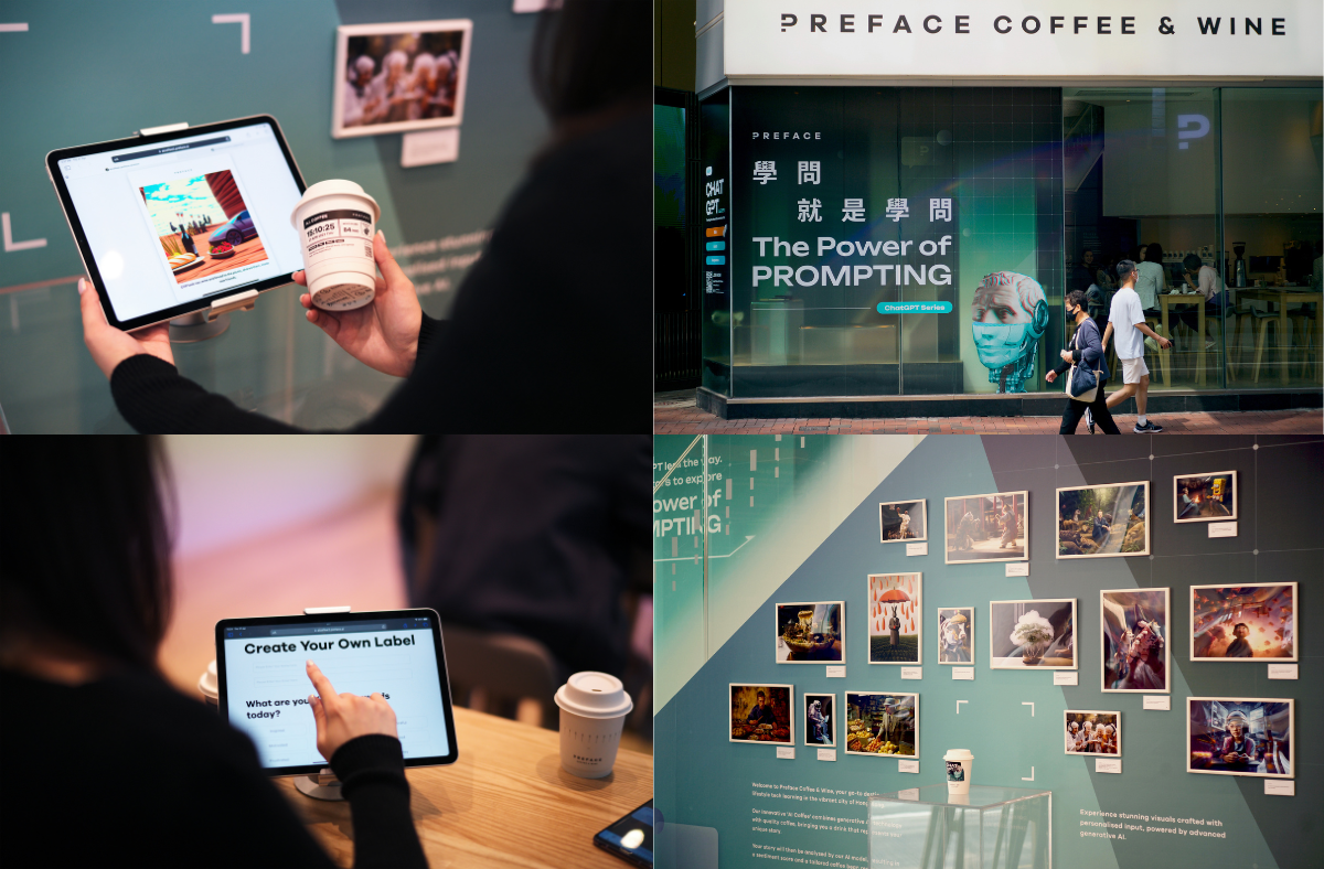 Preface will also use your creative story to generate a uniquely styled image using AI, for you to share on social media. Every image will be projected in real-time onto the store’s projector screen, forming an AI art piece co-created by Hong Kong people. In addition, anyone who orders an “AI Coffee” can receive a complimentary beverage, allowing more people to experience Generative AI technologies like ChatGPT, Dall-E, and MidJourney.