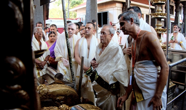 President Pranab Mukherjee visited the Sreekrishna temple at Guruvayur on Friday.