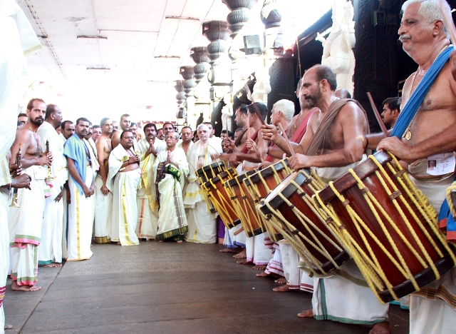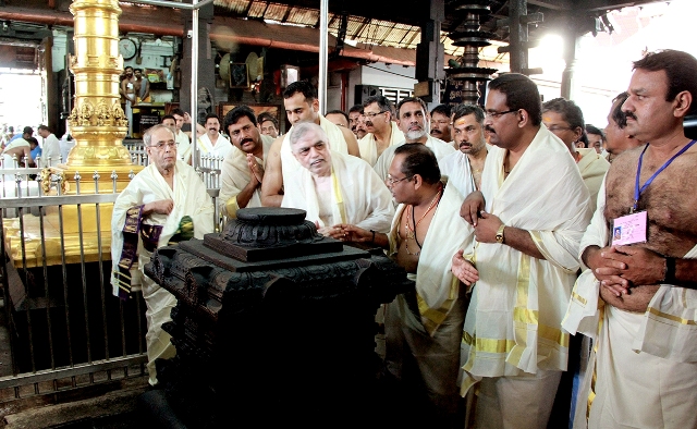 Mr. Mukherjee, who had darshan at the temple, also witnessed the Kazhchasheeveli ritual at the temple. A Krishnanattam performance was staged at the Sreevalsam guest house for the President.