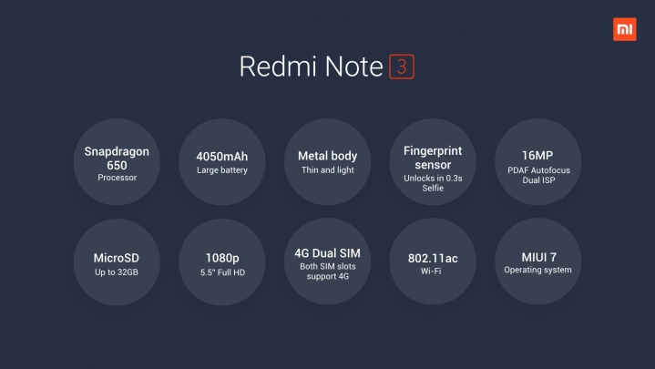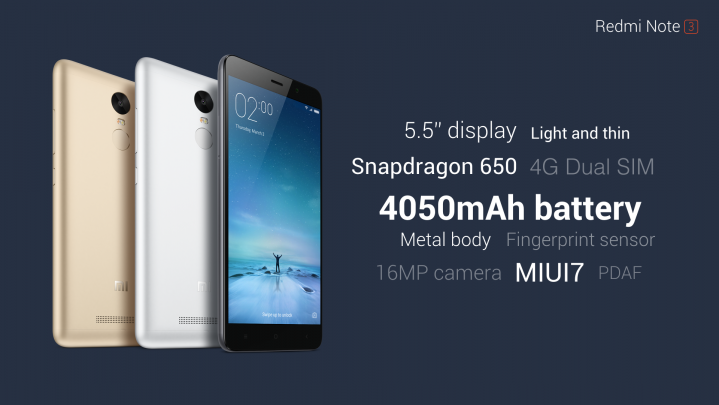 Redmi Note 3 is packed in a metal-body. Redmi Note 3 features a 5.5-inch Full HD IPS LCD display, Snapdragon 650 SoC with four Cortex A53 cores clocked at 1.4GHz and two newer Cortex A72 cores at 1.8GHz, microSD slot, 16MP camera with phase detection autofocus, 5MP front shooter, LTE connectivity, Wi-Fi ac, Bluetooth 4.1, and a 4000mAh battery. There’s also a fingerprint sensor at the back. On the software front, you’re looking at the latest version of MIUI 7 running on Android 5.1 Lollipop.