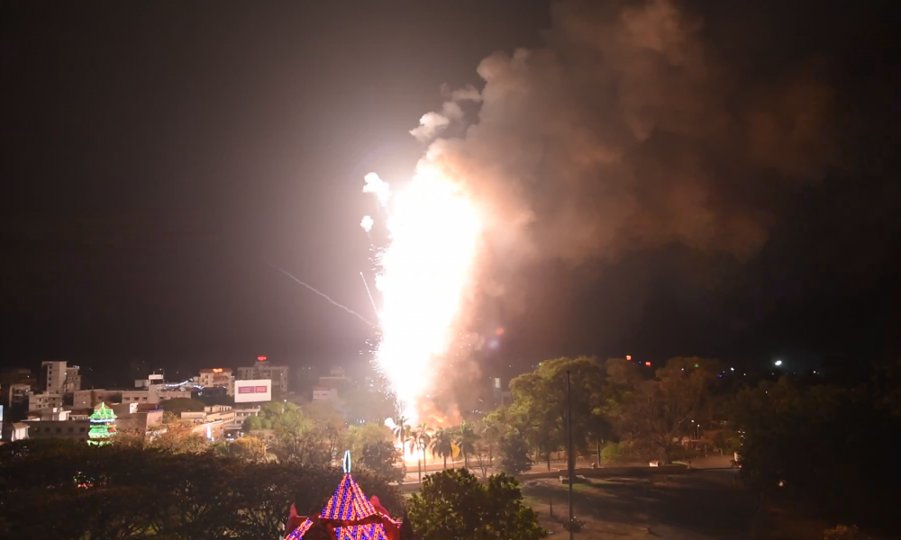 The Sample fireworks ceremony, It is Just a sample of the Great Thrissur pooram firworks( Vedikettu) which is held as two parts – Pramekavu and Thiruvambady.
