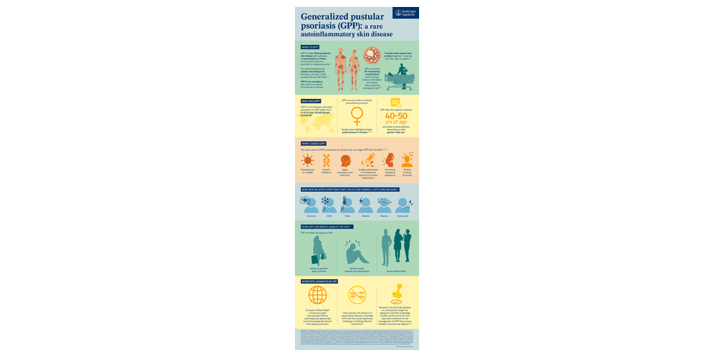 GPP flares, characterized by painful pustules all over the body, often require emergency care and can lead to serious, life-threatening complications such as sepsis, shock and multisystem organ failure.3 In addition to the acute distress of a GPP flare, living with the uncertainty of the impact of the next flare can have a significant emotional burden on patients.4