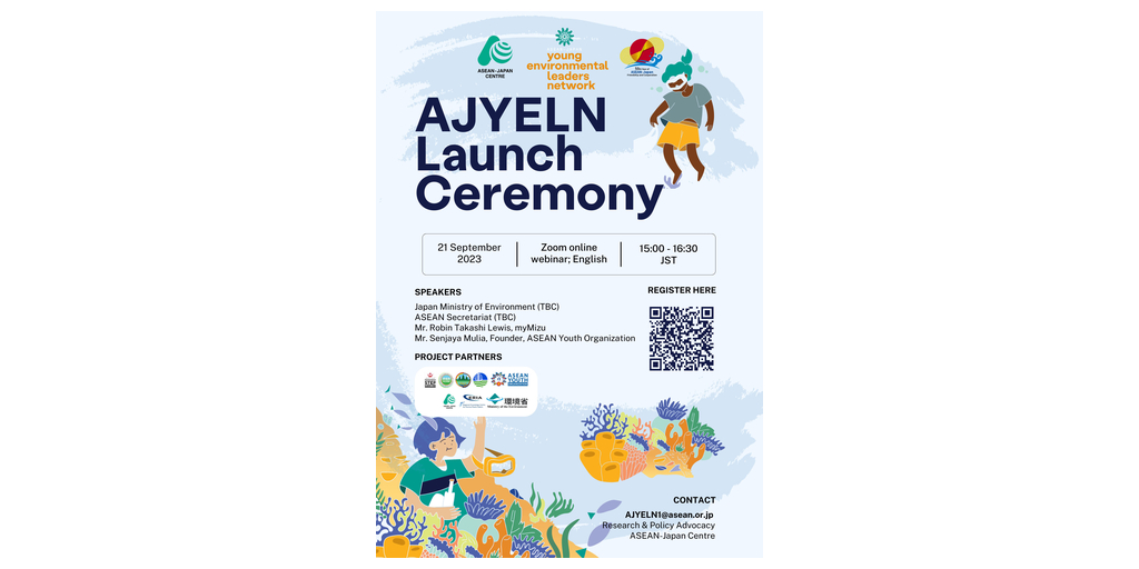 TOKYO–(BUSINESS WIRE)–The ASEAN-Japan Centre (AJC) will hold the ASEAN-Japan Young Environmental Leaders’ Network (AJYELN) Launch Ceremony on Thursday, September 21, 15:00-16:30 (JST). The launch will officially introduce the 37 young fellows who were competitively selected among hundreds of applicants from all ASEAN Member States and Japan. The AJYELN fellows will present their respective projects that address plastic pollution issues in their local communities.