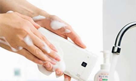 Waterproof phones are nice for hygiene since you can always give them a light wash. KDDI and Kyocera went a step further...