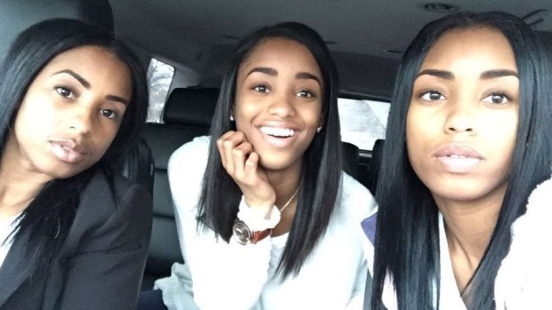 The teenager, Indianapolis, appears in the middle of the image, flanked by his sister and mom – but it is almost impossible to say that who is older.