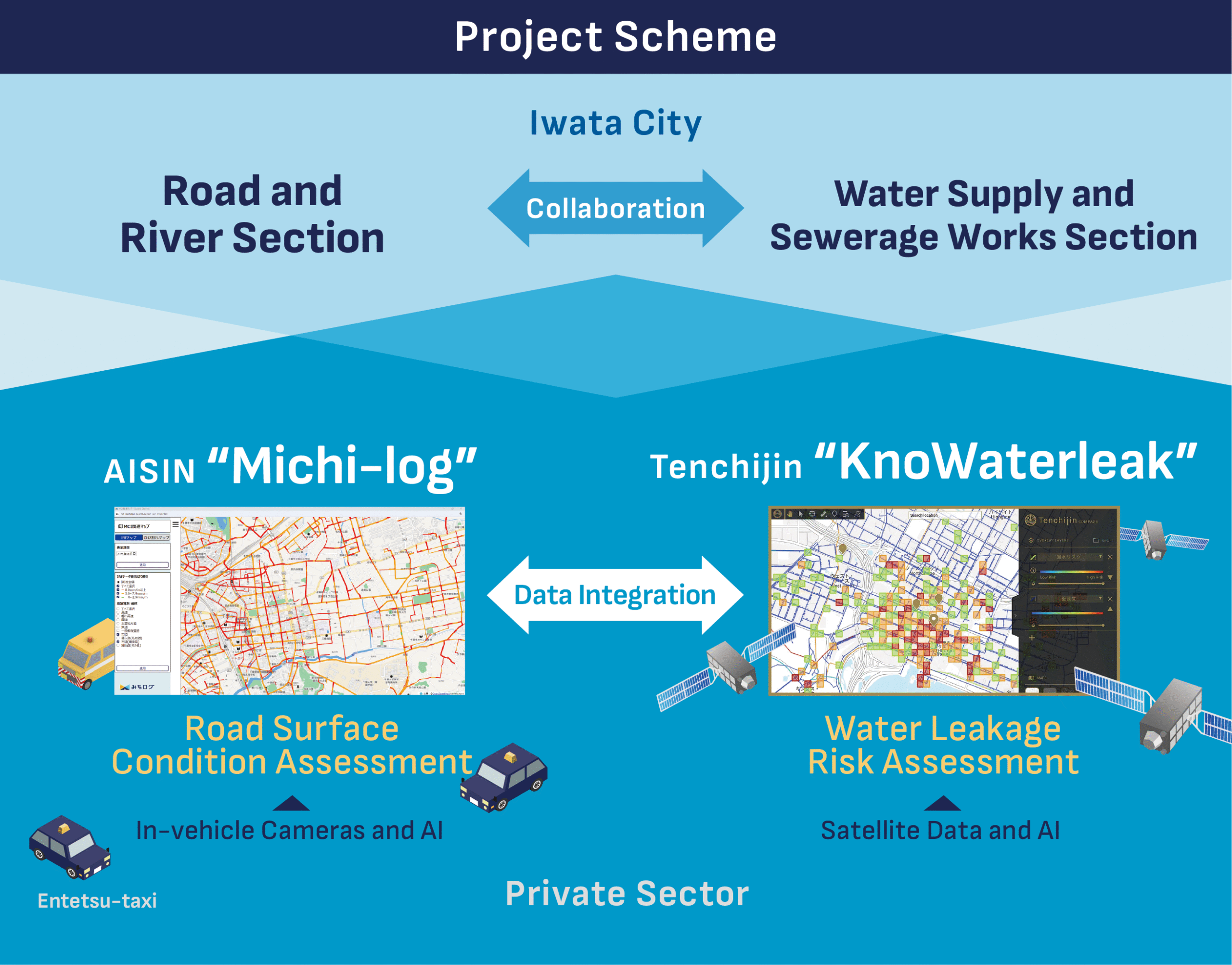 SHIZUOKA, JAPAN – Media OutReach Newswire – 25 September 2025 – Tenchijin Inc., a space-tech innovator revolutionizing sustainable water infrastructure management, in partnership with AISIN Corporation, a global automotive parts supplier and Toyota Motor Corporation group company, has launched “Pilot Project for Enhancing Infrastructure Management,” Japan’s first pilot project for integrated management of road and water infrastructure in Iwata City, Japan, in support of local taxi company, Entetsu-Taxi. The three parties—Tenchijin, AISIN and Iwata City—held a basic agreement signing ceremony on August 19, 2025. This pilot project will be conducted in Iwata City from September 2025 through the end of February 2026 (planned). The project aims to establish an integrated management model for road and water infrastructure, with a view to expanding it nationwide in Japan and, in the future, internationally.