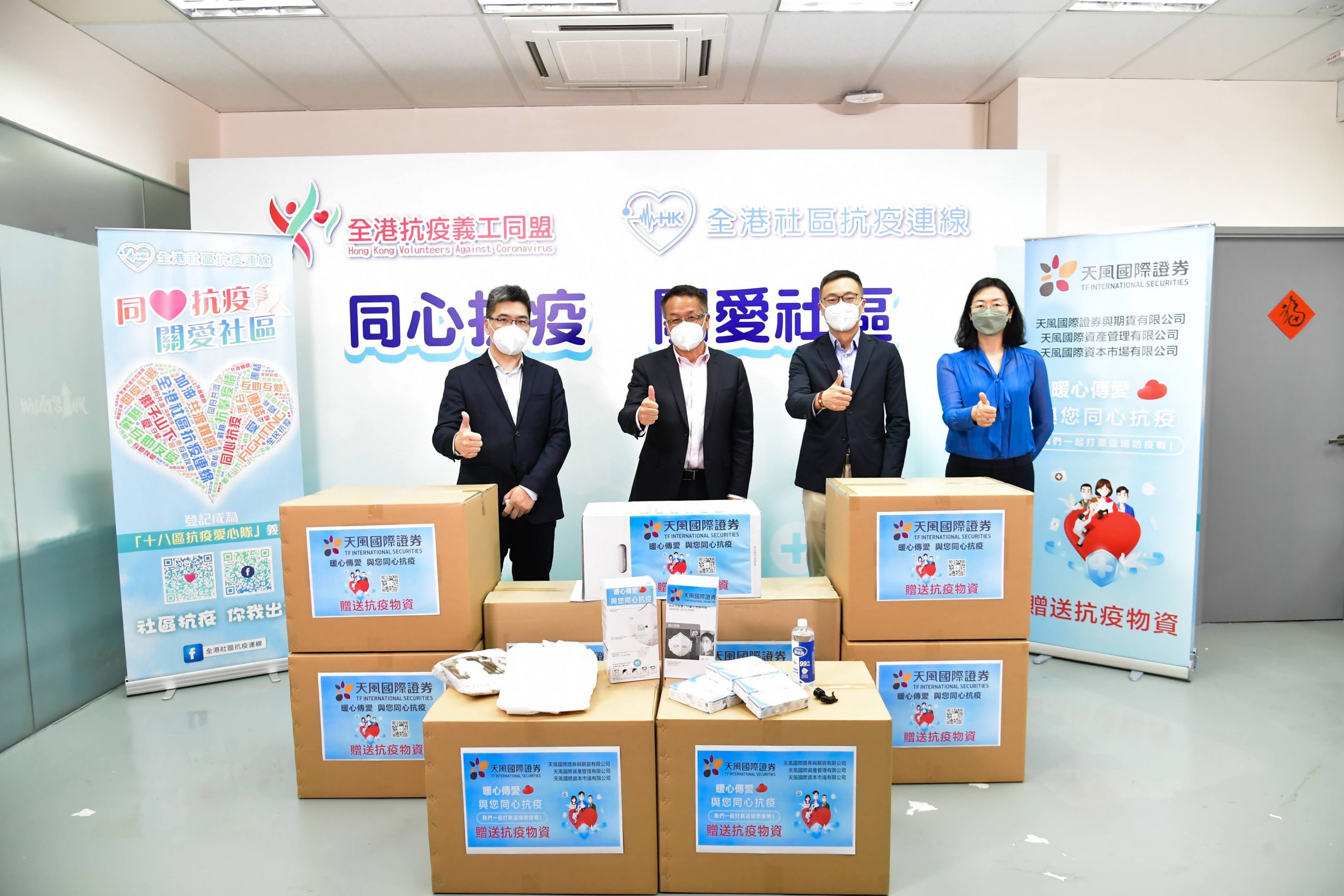 Since the outbreak of the fifth wave of the pandemic in Hong Kong at the beginning of 2022, the number of confirmed cases has soared to a record high successively. The virus sampling sites of community testing centers have constantly faced the dilemma of severe shortage of manpower and testing resources. Social and economic activities have been hit hard, residents daily life suffered from extreme inconvenience, as the epidemic prevention work is eking out under trials and hardship. Many families have been experiencing serious negative emotions and psychological strains. TF International is deeply concerned with Hong Kong compatriots and is profoundly aware of the importance of unswerving determination to fight the epidemic. Adhering to the aim of sharing weal and woe as well repaying to the society, TF International has decided to donate anti-epidemic substances that are currently in short supply to some gravely affected community residents, including [1] : 15,000 rapid antigen test kits, 15,000 high-quality N95 masks, 550 bottles of alcohol spray, numerous sets of hazmat suits and masks, and several air sterilizers, etc. The first batch of materials will be distributed to fundamental communities and nursing homes through HKCACL and will be donated to the Police Tactical Unit (PTU). The TF International· Spreading Love with Warm-heart, Fighting the Epidemic Together special anti-epidemic working group will collaborate closely with all its partners, to properly complete this donation activity under the guidance of measures that complied with epidemic prevention regulations. Do the best to support frontline medical and police personnel, strive to benefit the elderly, children, high-risk individuals, and those with financial predicament. Allow love and hope spread more swiftly and extensively, make concerted effort to prevent the virus from further contagion.