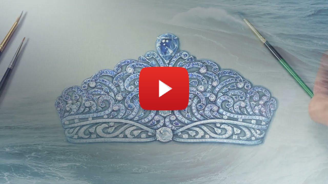 A unique, bespoke work of art and craft, the Force for Good crown emanates Mouawads passion for crafting the extraordinary, featuring the meticulous setting of sapphires and diamonds, whose design is replete with symbolism. Reflecting the point that significant change does not happen in an instant, the base of the crown is set with diamonds symbolizing the status quo. From the base upwards, rippling wave motifs reflect the momentum of change, with their varying sizes portraying that this momentum gains ground gradually through advocacy at different moments and places, to audiences large and small, over time.