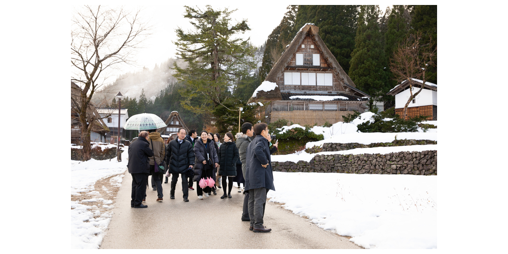 After the symposium, the participants from ROK divided into two groups and each group attended an inspection tour to different parts of Toyama Prefecture. One course visited a village of traditional “gassho-zukuri” farmhouses and some sake breweries, while the other course introduced the participants to architecture designated as national treasure and “suiboku” ink-and-wash painting art. The participants visited the Ainokura village in Nanto City and the national treasure temple of Zuiryuji in Takaoka City, diligently inspecting historical architectural structures and natural landscapes.