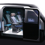 A vehicle interior space for ride-hailing mobility with Level 4 automated driving based on the concept of “Diversatility*”, diverse passenger needs and usage scenarios are met through versatile space layout and interior modules that can be easily interchanged. The vehicle is equipped with six advanced systems that can be optimally controlled according to each passenger’s conditions and needs, to provide always clean and comfortable moving interior, an entertaining user experience for passengers including wheelchair users.