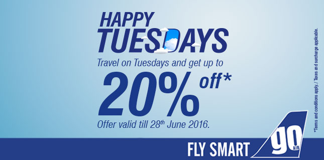 Low fare Tuesdays announced by Goair. Now fly with Goair on Tuesdays and get 20% off. So hurry and book your tickets to make the most of it.